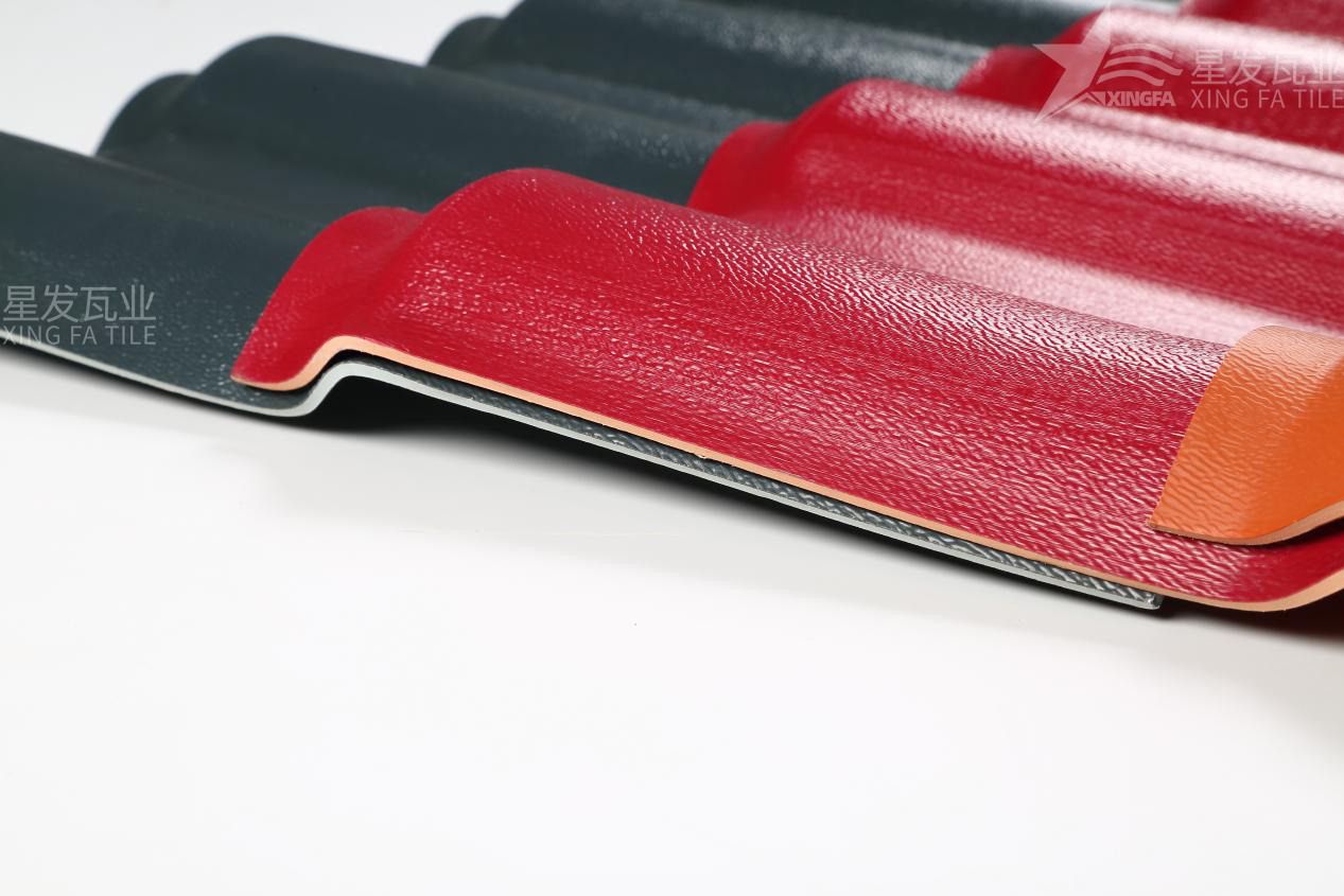 合成樹脂瓦通常由兩層構(gòu)成:上層為抗紫外線和抗老化層,下層為抗沖擊和耐腐蝕層。上層一般由ASA樹脂(丙烯酸酯-丙烯腈-苯乙烯共聚物)制成,具有優(yōu)異的耐候性和抗紫外線性能,可以有效延長合成樹脂瓦的使用壽命。下層則由PVC(聚氯乙烯)和其他補(bǔ)助材料組成,可以提供合成樹脂瓦的抗沖擊性、耐腐蝕性和其他物理性能。通常,這兩層是通過共擠合成的方式制成,以確保它們的緊密結(jié)合和性能協(xié)調(diào)。