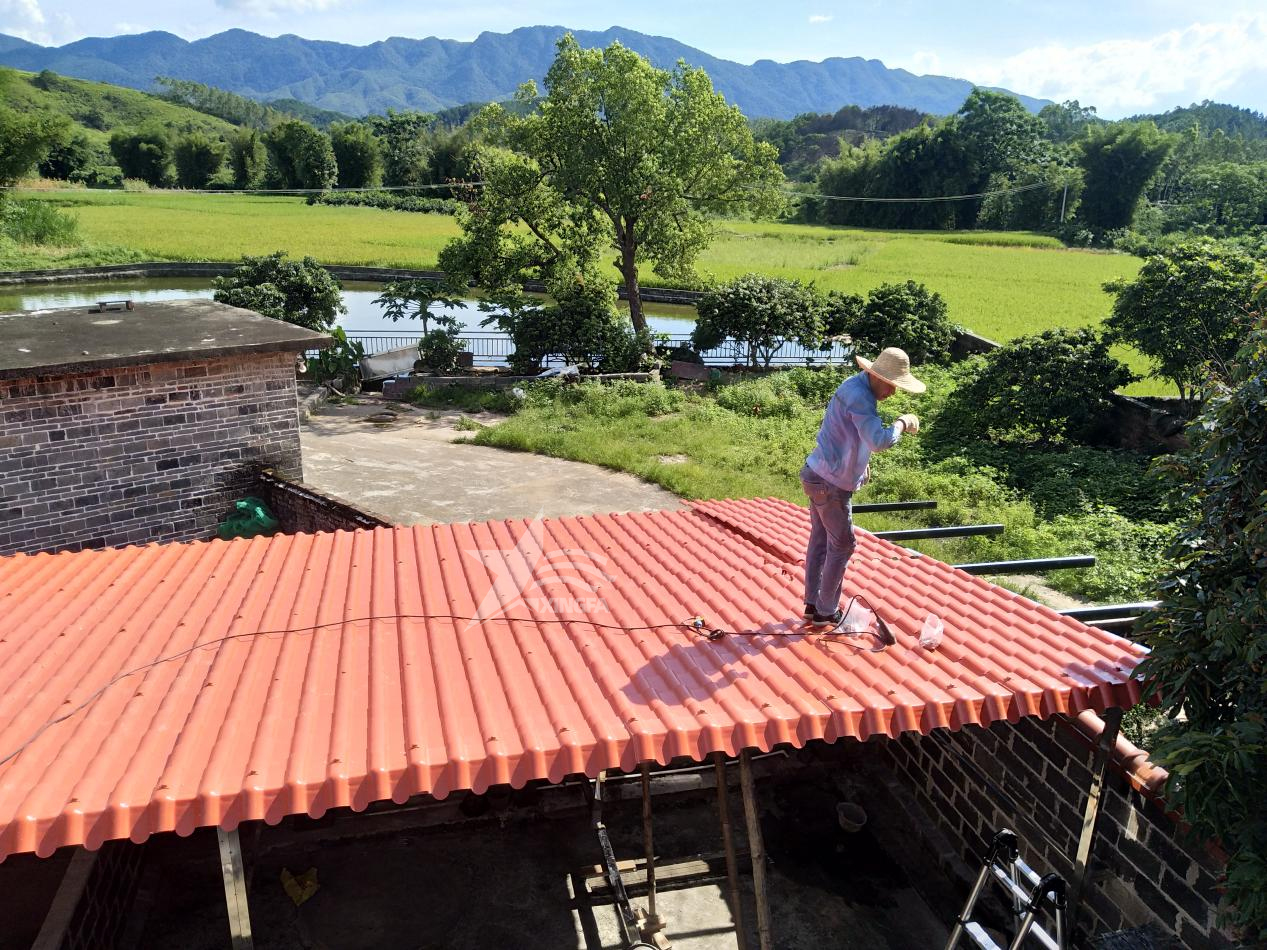 在完成防水層的鋪設后,再覆蓋保溫層和樹脂瓦,從而完成整個屋面的防水、保溫和瓦板覆蓋工作。